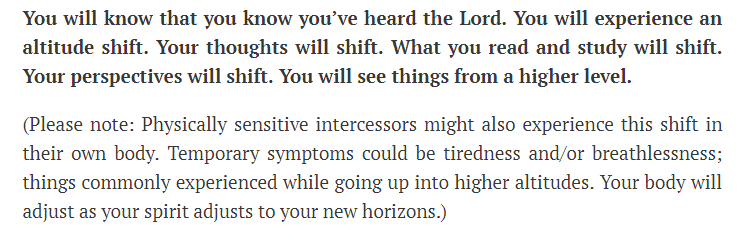 In her book, she also promotes automatic writing. Who needs scripture when you can receive direct revelation: “Before we go any further, pick up a pen, close your eyes, and ask your Creator to whisper his unique designations over you. Don’t be afraid that you are making up words of love and value. These words are really how he sees you. Be still a moment and know. I challenge you to write down three words or phrases that he whispers over you.”