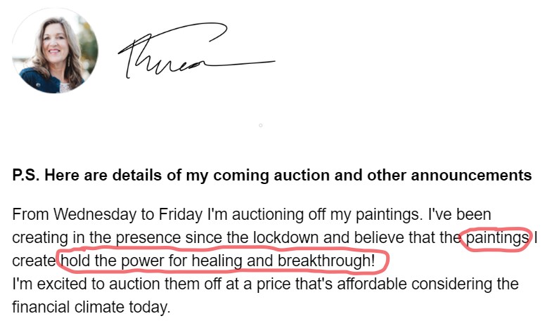 Dedmon’s final words of enticement: “Hope you take one of my paintings home, I will give you a great prophetic word with that as well.”